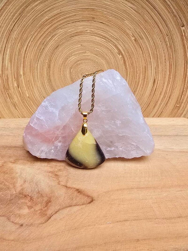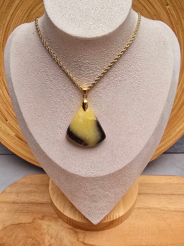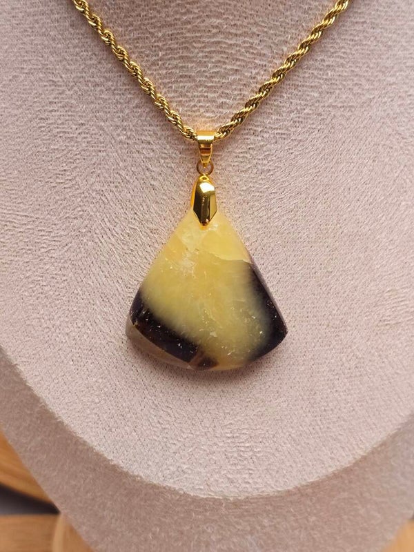 Chaîne et bélière en acier doré .(Possibilité de changer la couleur de la chaine et bélière en acier doré ou acier argent ).
