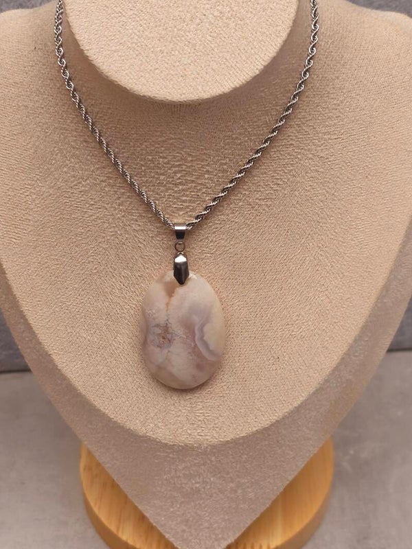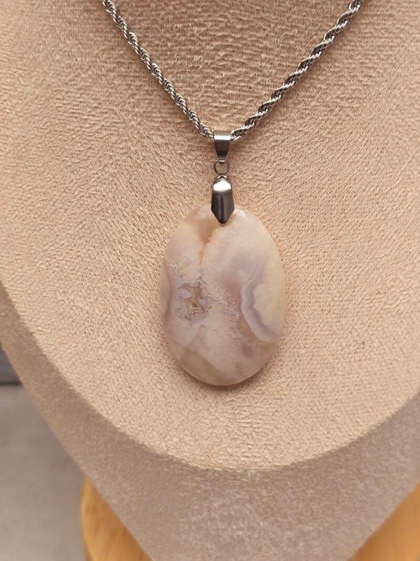 Pendentif Agate fleur de cerisier de Madagascar