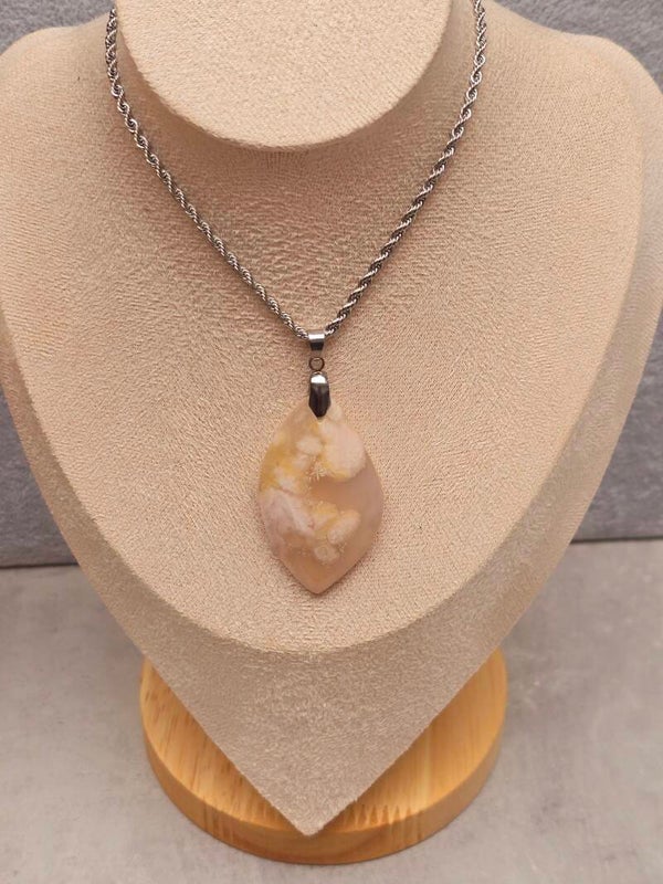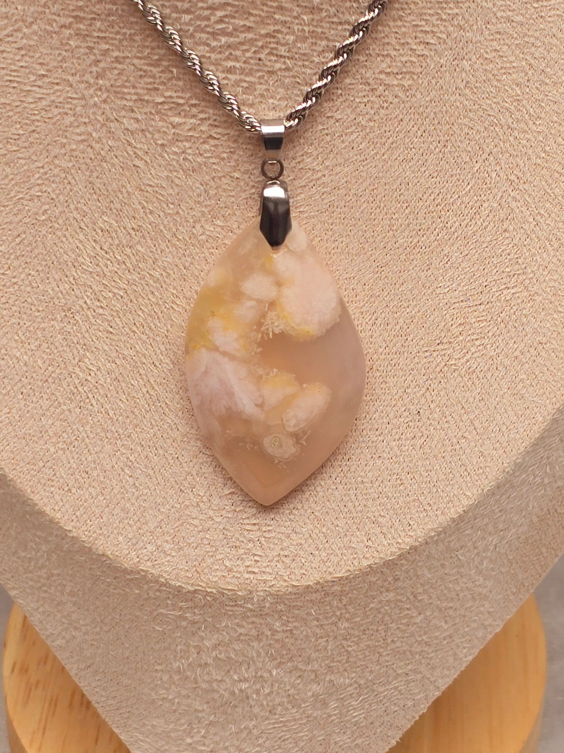 L'agate fleur (fleur de cerisier) est une pierre d'ancrage qui peut favoriser le développement personnel et restaurer l'équilibre émotionnel . Elle est également connue pour son lien profond avec le chakra du cœur, favorisant spontanéité et joie.
