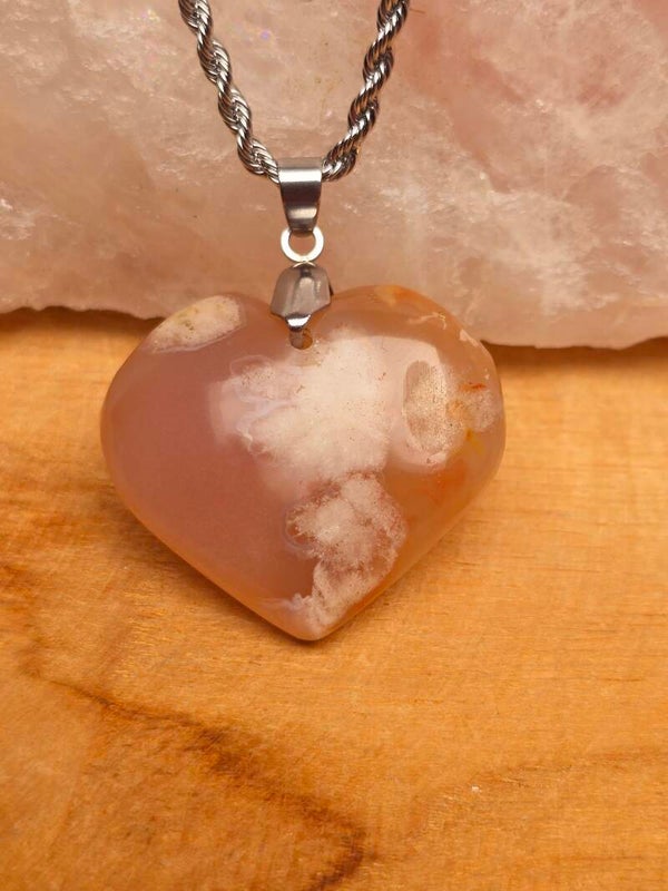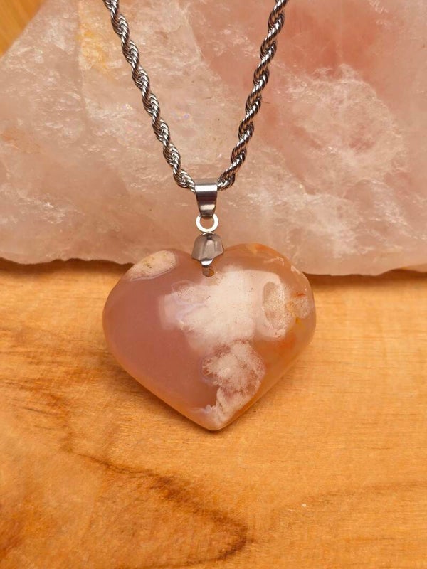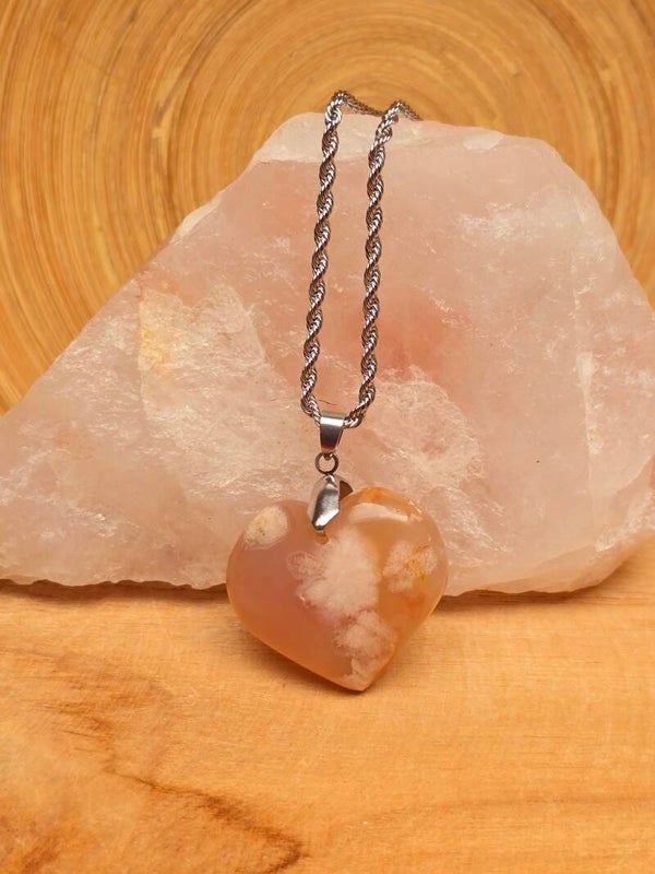 L'agate fleur (fleur de cerisier) est une pierre d'ancrage qui peut favoriser le développement personnel et restaurer l'équilibre émotionnel . Elle est également connue pour son lien profond avec le chakra du cœur, favorisant spontanéité et joie.